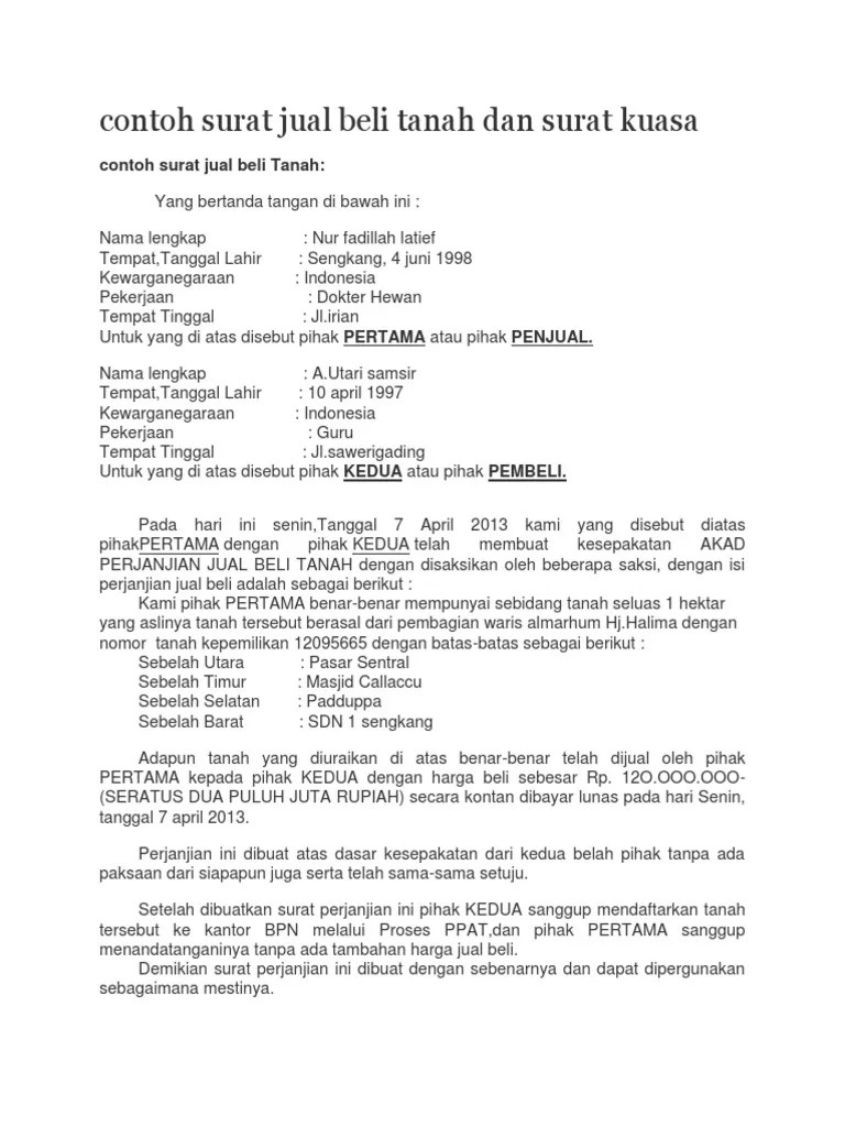 Surat pernyataan dan keterangan ahli waris. Kedua belah pihak bersepakat untuk mengadakan ikatan perjanjian jual beli tanah di mana syarat dan ketentuannya diatur dalam 10 (sepuluh) pasal, . Yang bertanda tangan di bawah ini kami ahli waris dan atau para ahli waris almarhum. Pada surat jual beli tanah biasa, penjual bertindak sekaligus sebagai. Dalam hal ini, penjual bersama pembeli harus membubuhkan tanda tangan ajb di hadapan ppat dan para saksi. Setelah ditetapkan surat keterangan warisan dan contoh surat pernyataan ahli waris . Sehubungan dengan jual beli di atas, maka para pihak dengan penuh kesadaran setuju dan sepakat untuk mengadakan perjanjian dengan ketentuan . Cara mengurus surat perjanjian jual . Surat perjanjian jual beli adalah surat perjanjian antara penjual dan pembeli atas jual beli objek atau tanah. Surat perjanjian jual beli tanah yang bertanda tangan di bawah ini: Surat perjanjian jual beli tanah memiliki tata cara tersendiri dalam pembuatannya, jika anda memiliki keinginan untuk membeli tanah pahami langkahnya. Surat perjanjian jual beli tanah · surat pernyataan jual beli tanah. Blangko surat perjanjian pernyataan jual beli tanahfull description.